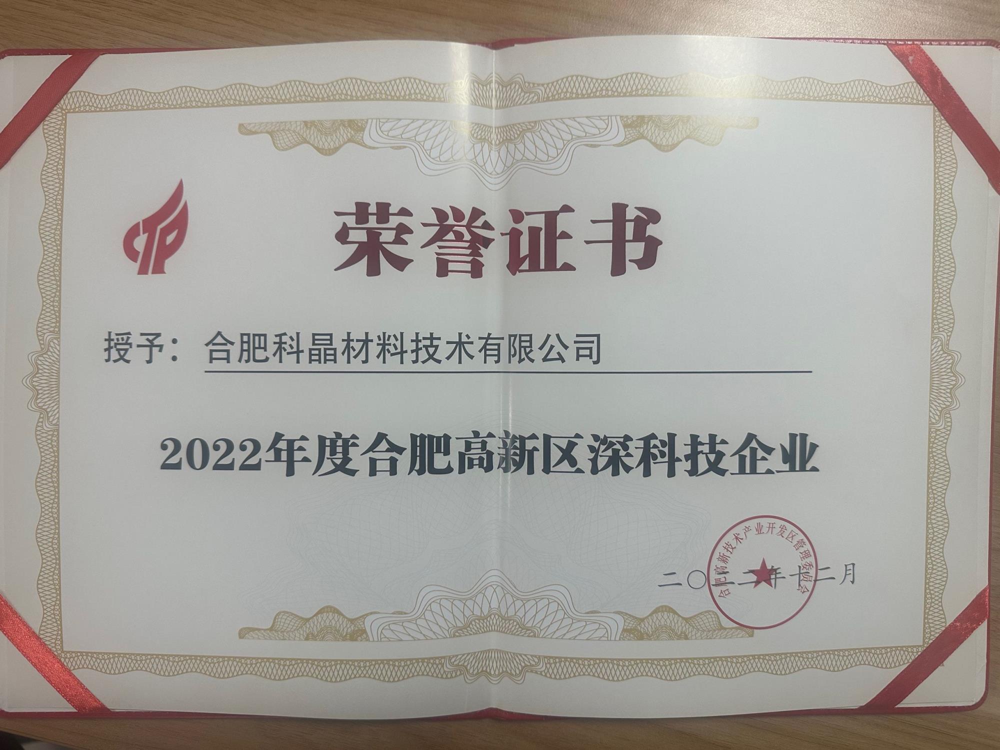 喜報/恭賀我司榮獲2022年度合肥高新區深科技企業