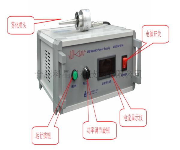 特點 | · 霧粒噴出的初速度較小,分散的霧粒尺寸較均勻 · 含有200W,40KHz的超聲波源 · 客戶可自行搭建超聲霧化制膜設備 · 標配兩種霧化噴頭 |