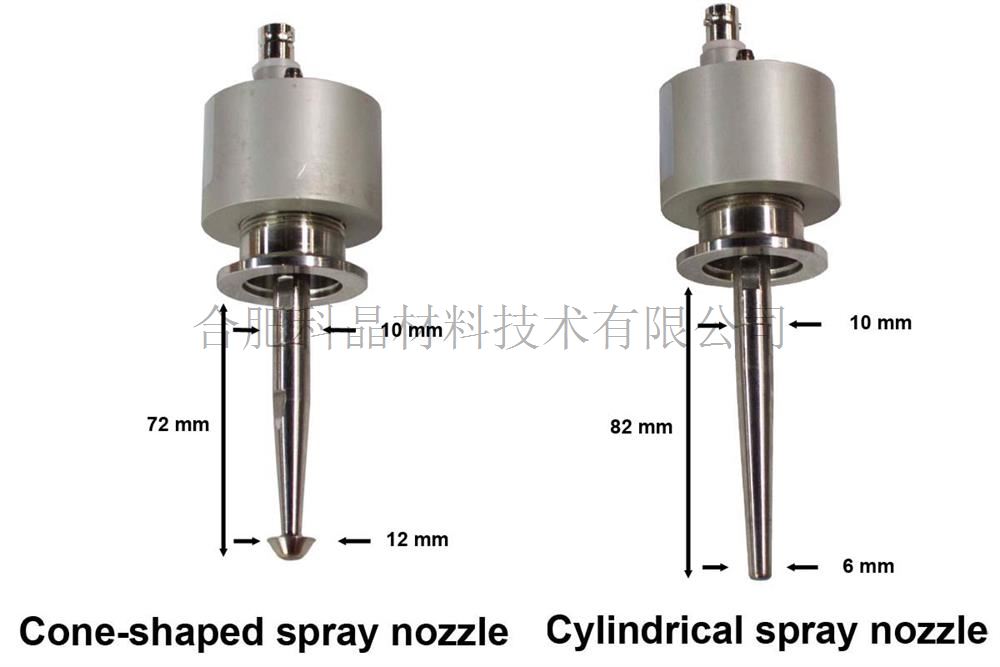 · 兩個霧化頭的噴霧形狀不一樣,蘑菇頭是分散,尖頭是聚攏的,但產生的霧化顆粒直徑大小一樣 · 噴頭材料:由鈦合金制成 · 噴霧速度:0.1-10ml/min · 流體粘度范圍:≤20cps · 可根據要求提供定制的噴嘴形狀,但需額外付費。 |
