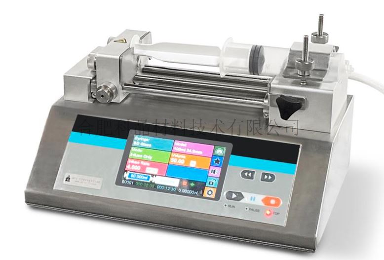 數顯型注射泵 | ·數顯型觸摸屏操作面板注射泵,用于穩定給靜電紡絲頭供液 ·安裝有一個200ml的注射器 ·泵速:最小1.963ul/min,最大294.524ml/min ·推桿移動速度:15cm/min(最大),0.0001cm/min(最小) |