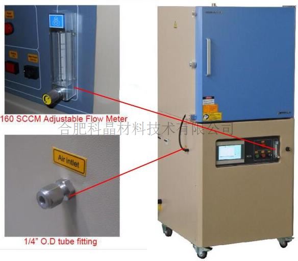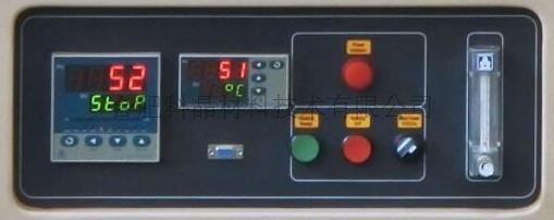 進(jìn)氣和浮子流量計(jì) | ·氣體進(jìn)口是外徑1/4英寸不銹鋼雙卡套接口,安裝在爐的左邊面板 ·氣出口安裝在爐子的頂部。 ·在爐體前面板上安裝了一個(gè)量程為160sccm的浮動(dòng)流量計(jì),流量大小可通過旋鈕調(diào)節(jié) |