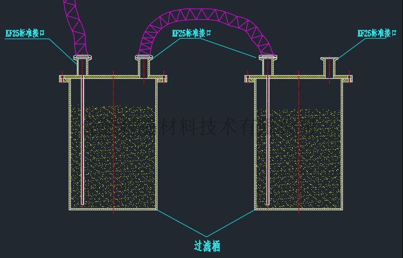 過濾桶組件 | · 兩個過濾器之間通過波紋管串聯在一起。過濾器尺寸:φ200*300mm,過濾桶內裝有過濾介質,右側過濾桶的另一個KF25接口與真空系統連接 · 真空系統的抽氣口頂部安裝了一個粉塵過濾器,過濾器參數如下: · 連接口徑:KF25 · 材質:304不銹鋼 · 濾芯壽命:2000-4000H(可定期用壓縮氣體吹掃) · 流量:≥8L/S · 過濾精度:≤5um · 使用壓力范圍:1Pa~大氣壓(壓力小于1Pa后會面線影響氣體流速) |