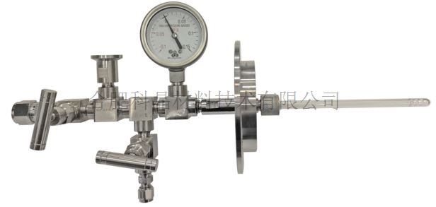 不銹鋼密封系統 | · 一對316L材質的不銹鋼密封法蘭安裝在爐管兩端 · 左端法蘭上有兩個316L材質的進氣口,一個為工作氣體進氣,一個為惰性氣體進氣口,兩個進氣口分別通過一個不銹鋼針閥手動控制進氣的通斷;安裝了一個量程為-0.1-0.15MPa的機械壓力表用于觀察爐管內壓力,一個KF16接口上安裝了一個數顯防腐真空計 · 下法蘭上含有一個316L材質的出氣口,通過一個316L材質的隔膜閥控制出氣的通斷;安裝了一個安全泄壓閥,當爐管內氣壓達到上限壓力時,安全閥自動打開排氣;一個KF25接口為抽真空接口,通過波紋管與真空系統連接,(出氣口、排氣口需安裝尾氣處理裝置,處理裝置客戶自備);一個KF50接口與收料罐組件上的球閥連接