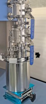 收集罐組件 | · 立式爐底部法蘭采用快速連接的方式安裝了兩個球閥,兩個球閥底部與收集罐連接;球閥與收集罐均為316L材質 · 收集罐尺寸約:φ166*290mm(高) · 收料罐上蓋另有一個KF接口,可用于連接其他檢測設備 · 一個可伸縮的升降平臺放置在收料罐底部,可調節收料罐與爐管法蘭的間距 |