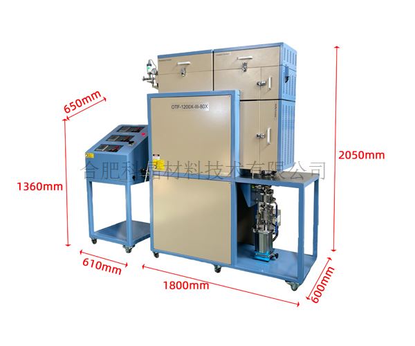 設備外形尺寸 | · 1200℃升華沉積系統:1800*600*2050 mm(長*寬*高) · 控制柜:610*650*1360 mm(長*寬*高) |