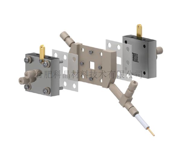 · 雙極板采用耐腐蝕性良好的鈦金屬制成,中心室板采用PEEK制作。 · 厚度為1.2 mm的中心腔用于電解液流動,并安裝了參比電極(Ag/AgCl) · 具有高電化學腐蝕性能的PTFE墊片 · 蛇形氣流通道,增加反應停留時間。其他形狀的流道也可根據要求提供